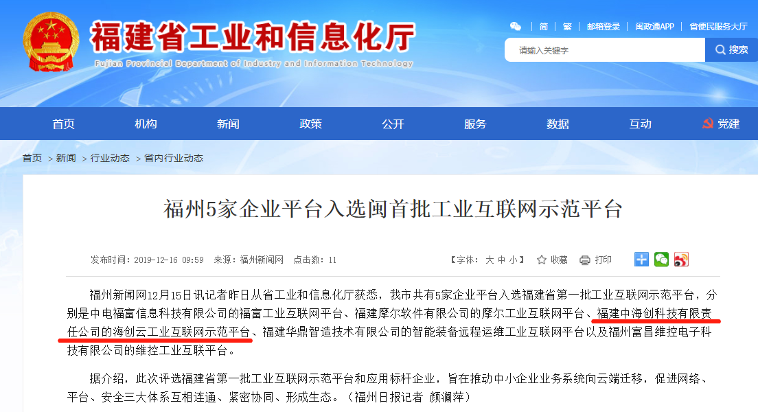 近日,福建省工业和信息化厅公示了福建省首批工业互联网示范平台和应用标杆企业名单。中中欧(中国)zhongou·官方网页版科技中欧(中国)zhongou·官方网页版云工业互联网平台在众多参评企业中脱颖而出,成功入选。
