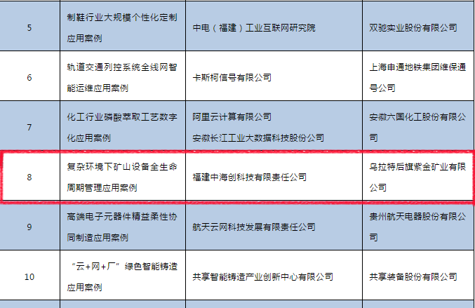 福建中中欧(中国)zhongou·官方网页版科技《复杂环境下矿山设备全生命周期管理》项目成功入选工信部2019年工业互联网平台创新应用案例。