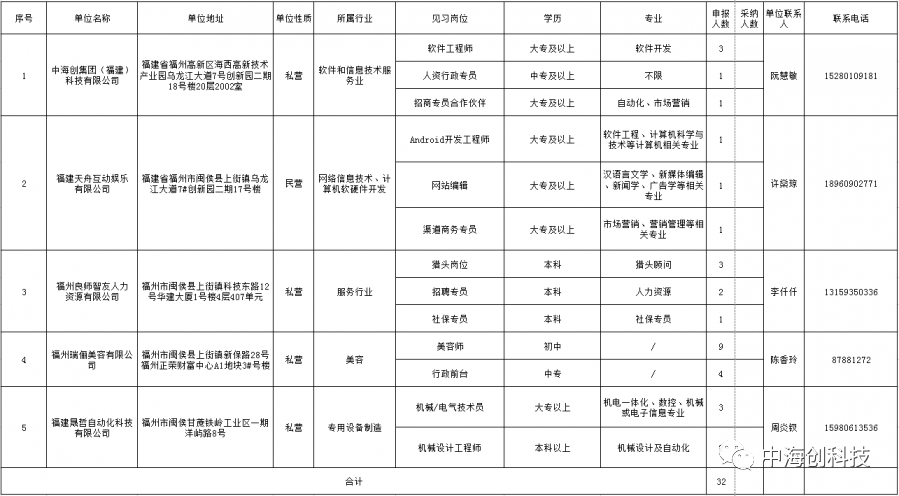 据了解,2020年第四批青年见习岗位32个,供离校2年内未就业大中专(含技校)毕业生和16~24岁失业青年(简称见习人员)参加见习,见习时长为3~12个月。见习期间,见习基地应为见习人员提供必要的见习指导,按月发放生活补助,并为见习人员办理人身意外伤害保险。符合条件的广大毕业生和适龄青年可向企业或高新区人社局劳动保障科报名参加就业见习,进行岗位锻炼,提升就业能力。 ▲福州高新区2020年第四批青年见习岗位 入选福州高新区第四批青年就业见习单位,既是对中中欧(中国)zhongou·官方网页版科技集团肯定也是激励。中中欧(中国)zhongou·官方网页版始终不忘履行作为一个优秀的科技公司的社会责任,在奉献与责任的道路上阔步前行。未来,集团将继续加强就业见习计划,大力引进人才、培养人才,实现企业、毕业生、高校互赢的新好局面,为公司未来的发展奠定坚实的人才基础。