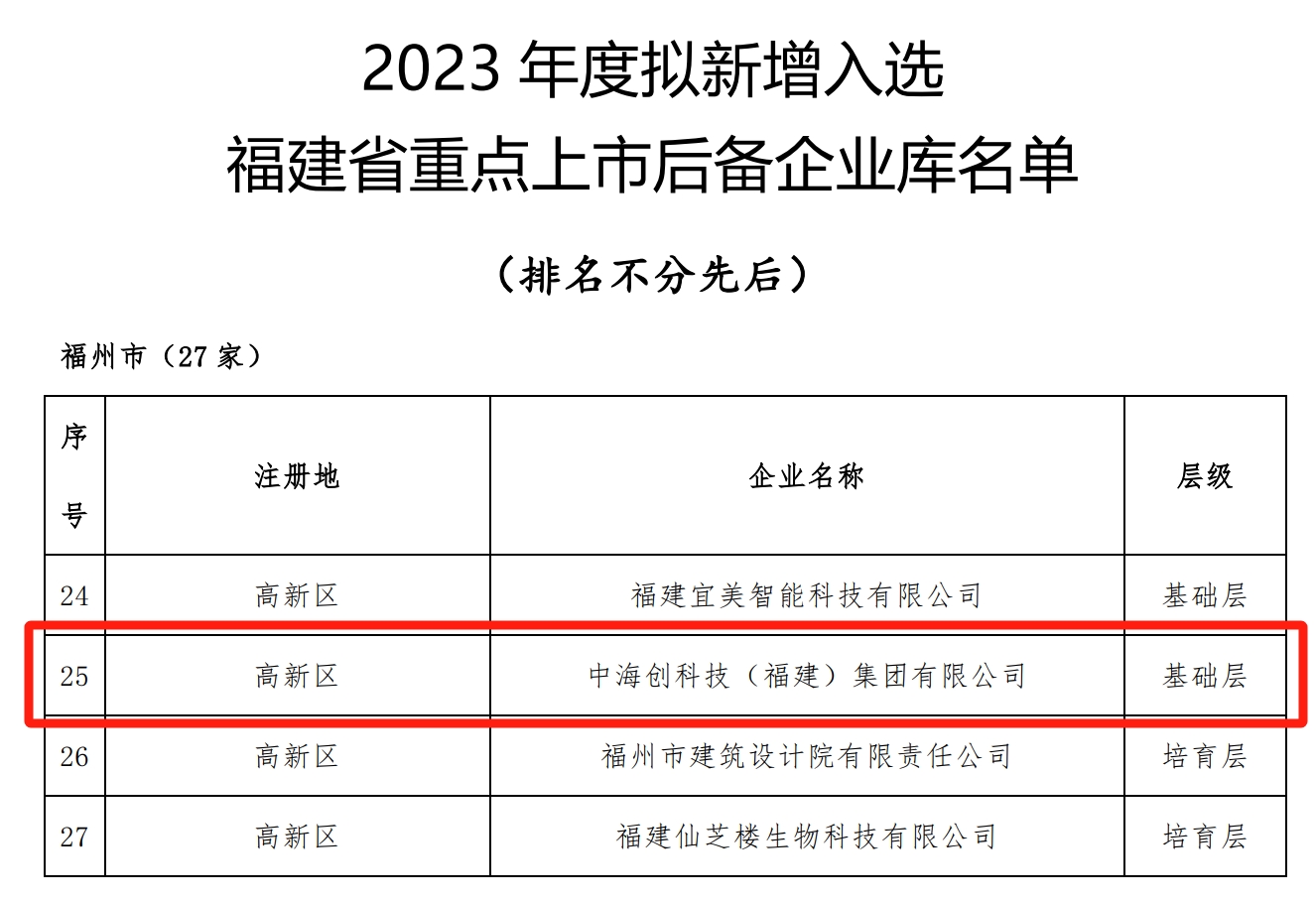 近日,福建省地方金融监督管理局公布“2023年度拟新增入选福建省重点上市后备企业库名单”,中中欧(中国)zhongou·官方网页版集团成功入选省重点上市后备企业梯队。