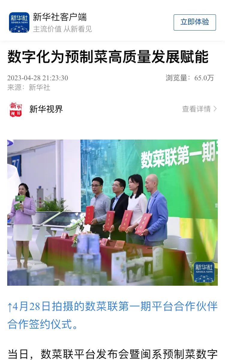 在活动现场,预制菜平台与省预制菜协会、老字号协会、福供云厨举行了战略合作签约仪式,以加快更多优质资源的引入,推动预制菜行业平台良性发展生态的快速形成。同时,数菜联平台与天马食品等12家预制菜上下游企业签署了第一期平台合作协议,签约企业涵盖预制菜产业上下游的不同细分领域。根据协议,双方将基于平台优势,共同提高预制菜产品和服务的质量,为消费者提供更加优质的体验,全面推动预制菜行业的高质量发展。
